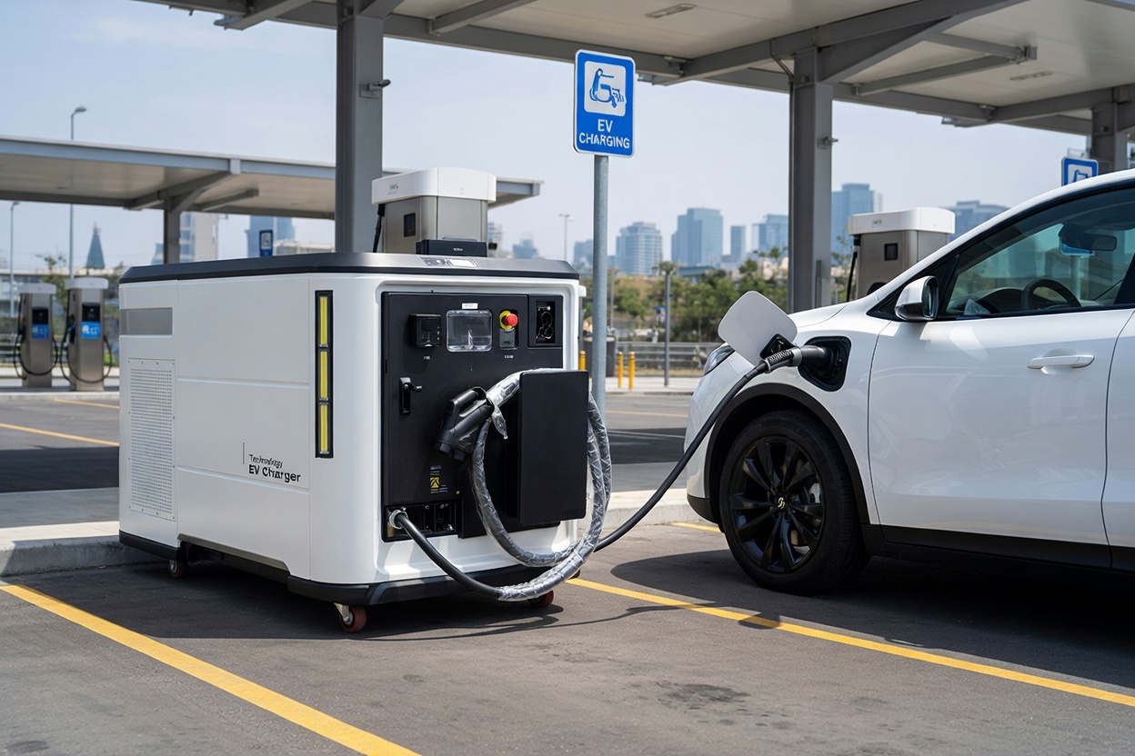 Designed for remote charging stations, fleet depots, construction sites, and temporary charging infrastructure, this system provides fast EV charging with built-in energy storage and intelligent energy management.