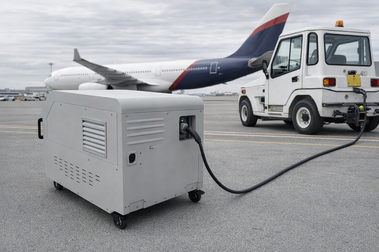 Airports use hundreds of electric baggage tractors, belt loaders, and passenger shuttles. Fixed chargers consume valuable gate space. Our compact unit (1075×630×697mm) can be wheeled to any GSE parked on the apron. The built‑in battery eliminates cable tripping hazards and works in ‑20°C to 65°C (with derating above 55°C). Support for CAN and OCPP allows integration with airport telematics.